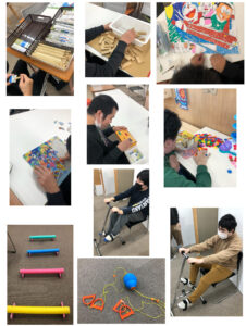 室内の運動ではサークルラダーを歩いたり、バランスボールやエクササイズバイク、