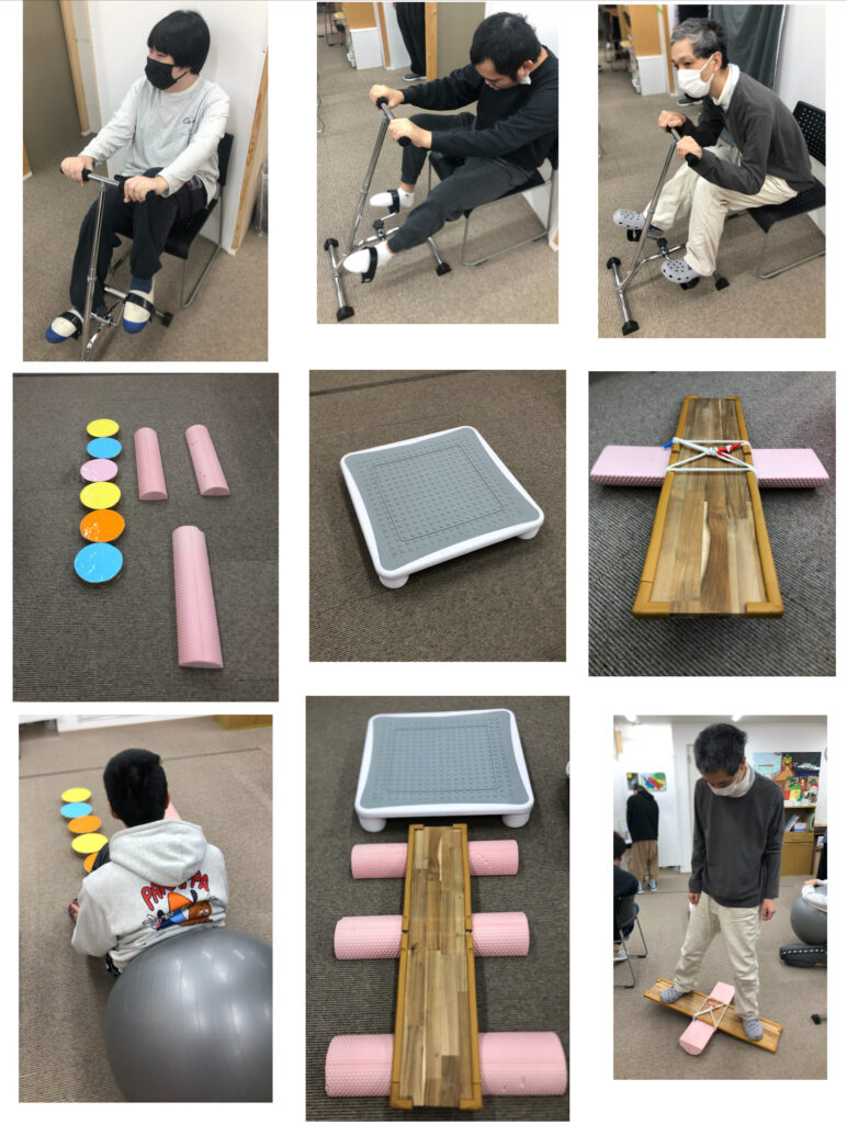 (運動器具[エクササイズバイク、バランスボール、トランポリン、ライン歩き、